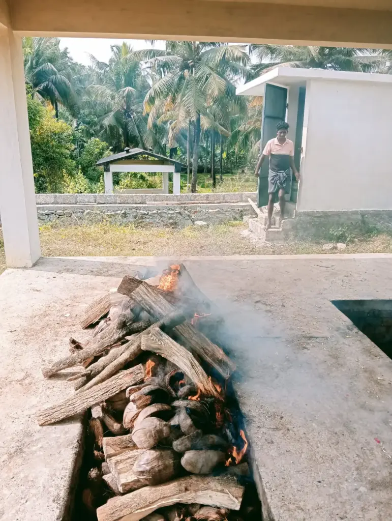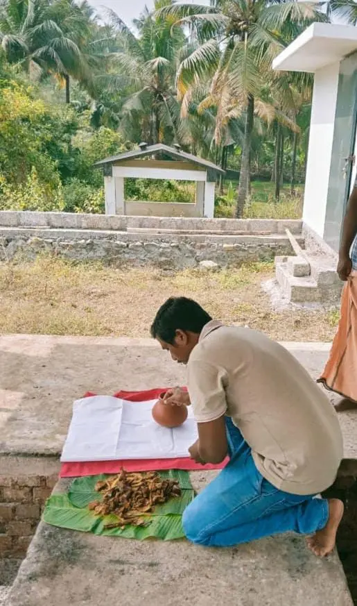 A destitute old grandmother from Kurunthancode area died,Vone of our karyakartha cremated her body as her son and did the third day things too in our Harichandra pothu chudukaadu.